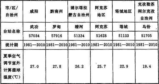 表15 部分臺站夏季空調室外計算濕球溫度參考值