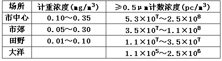 根據(jù)國內(nèi)外測試資料,農(nóng)村空氣污染程度較低,其含塵濃度一般只相當(dāng)于城市含塵濃度的幾分之一,甚至低一個數(shù)量級。而城市工業(yè)區(qū)的含塵濃度又遠(yuǎn)高于城市市區(qū)及市郊。不同地區(qū)含塵濃度也不同,如表1~表3所示。不同季節(jié)的含塵濃度也不相同,表4所列是天津市某地段不同季節(jié)室外含塵濃度的實測值。